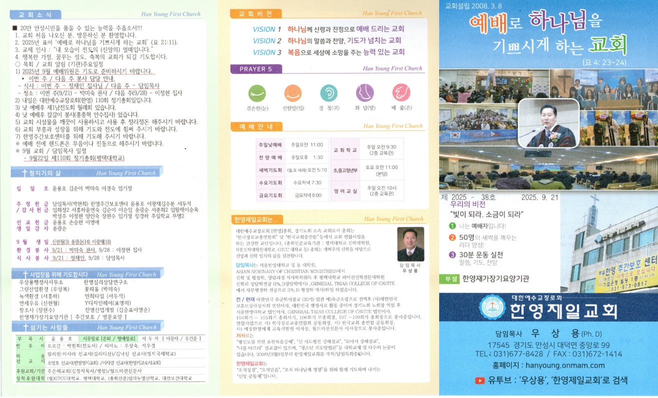한영제일교회 2025년 09월 21일 주보