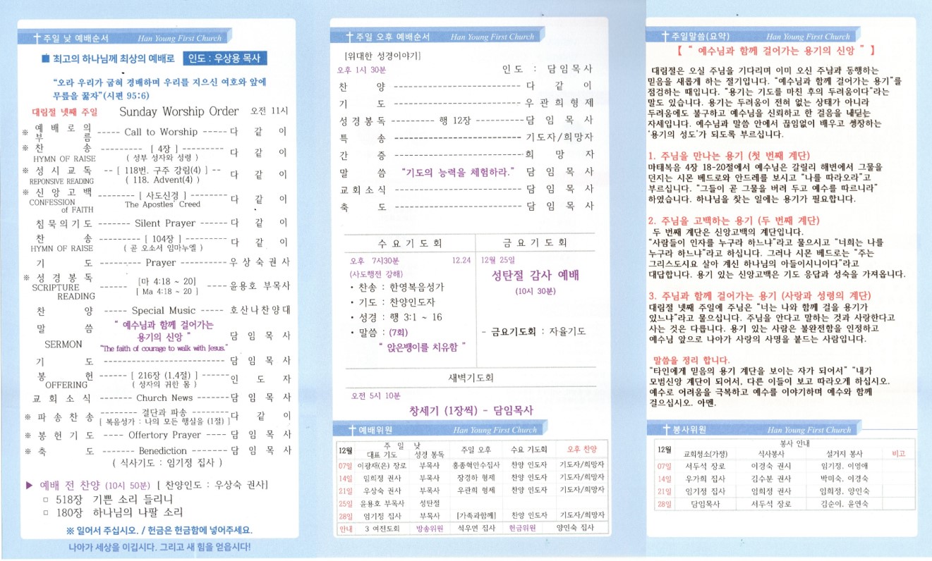 한영제일교회 2025년 12월 14일 주보
