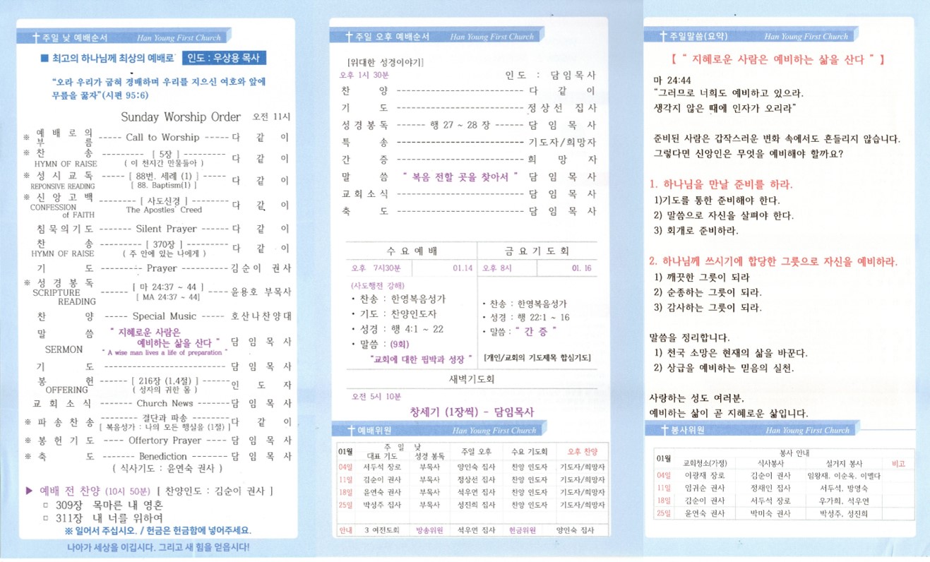 한영제일교회 2026년 01월 11일 주보