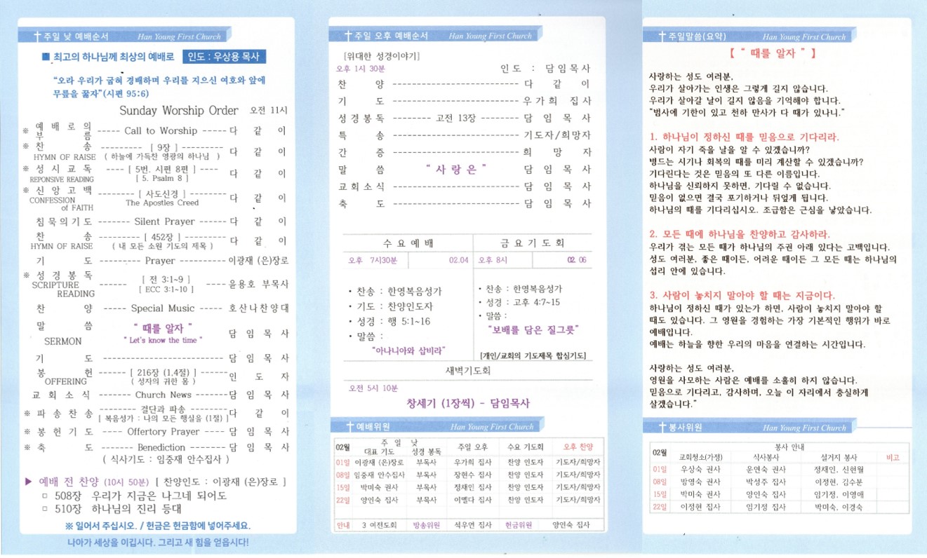 한영제일교회 2026년 02월 01일 주보